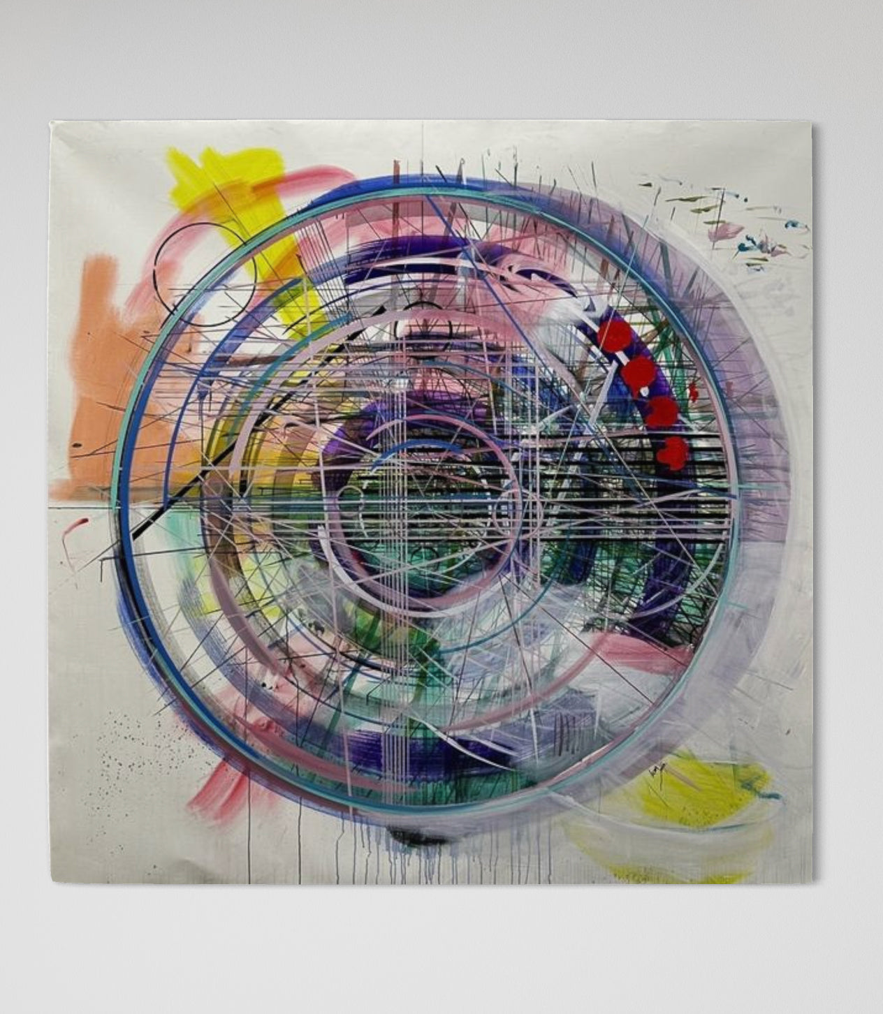 Juan Sanz (born 1983) is a Colombian contemporary artist whose work explores the harmony between geometry, color, and emotion. His abstract compositions transform light and line into visual expressions of inner experience and spiritual balance.