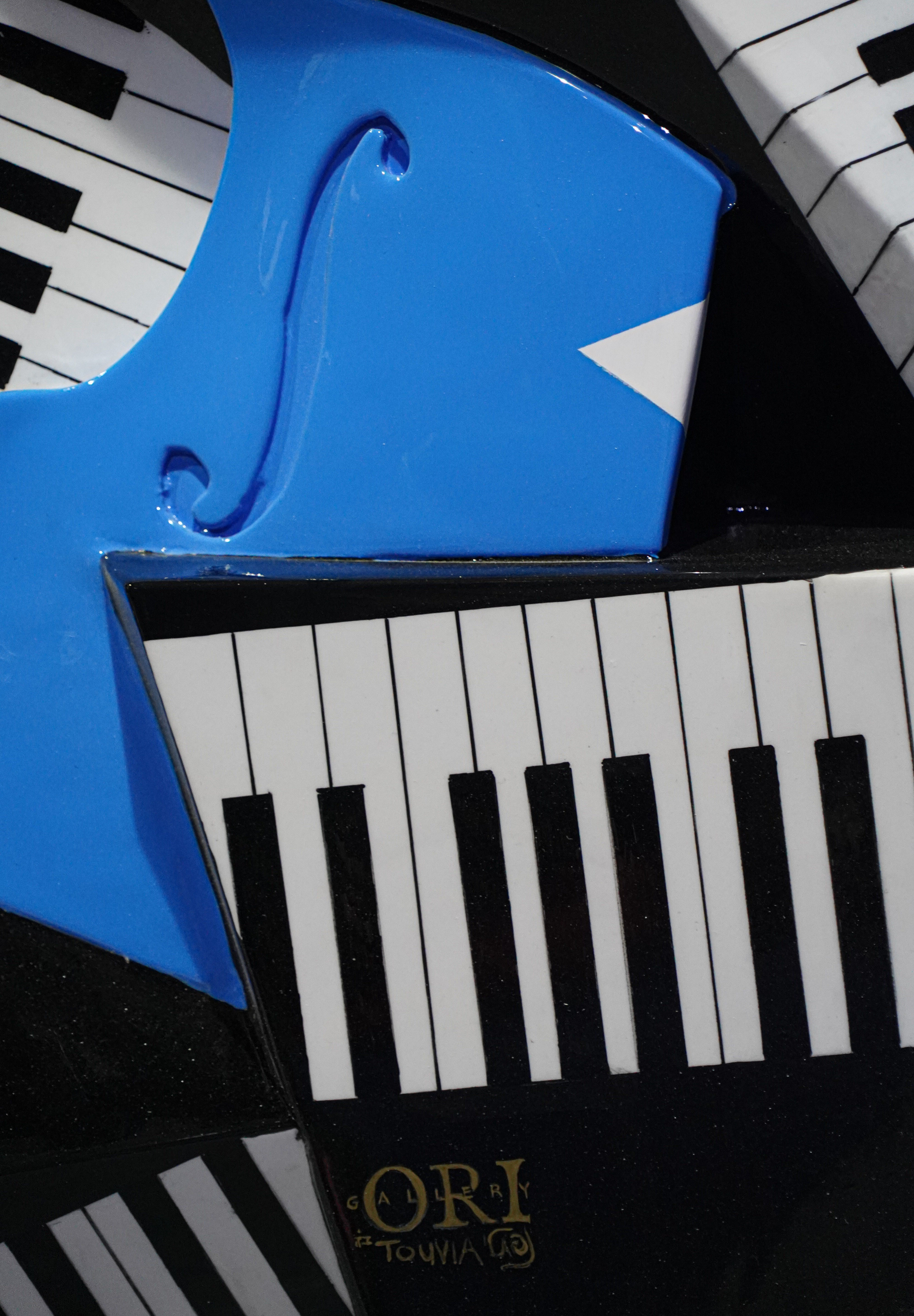 In Broken Piano, Whole Soul, Naftali Tovia turns fragmentation into harmony. Shattered keys and fractured curves burst outward in a brilliant interplay of geometry, rhythm, and emotion. The bold blues and blacks pulse with musical energy, while flashes of red and white punctuate the composition like syncopated notes in a jazz improvisation.