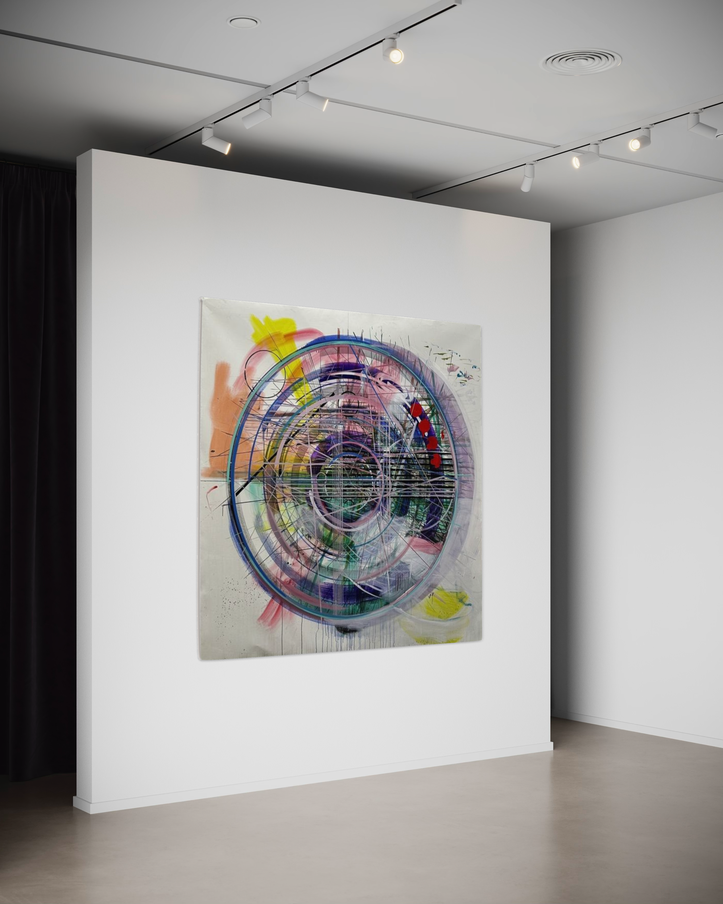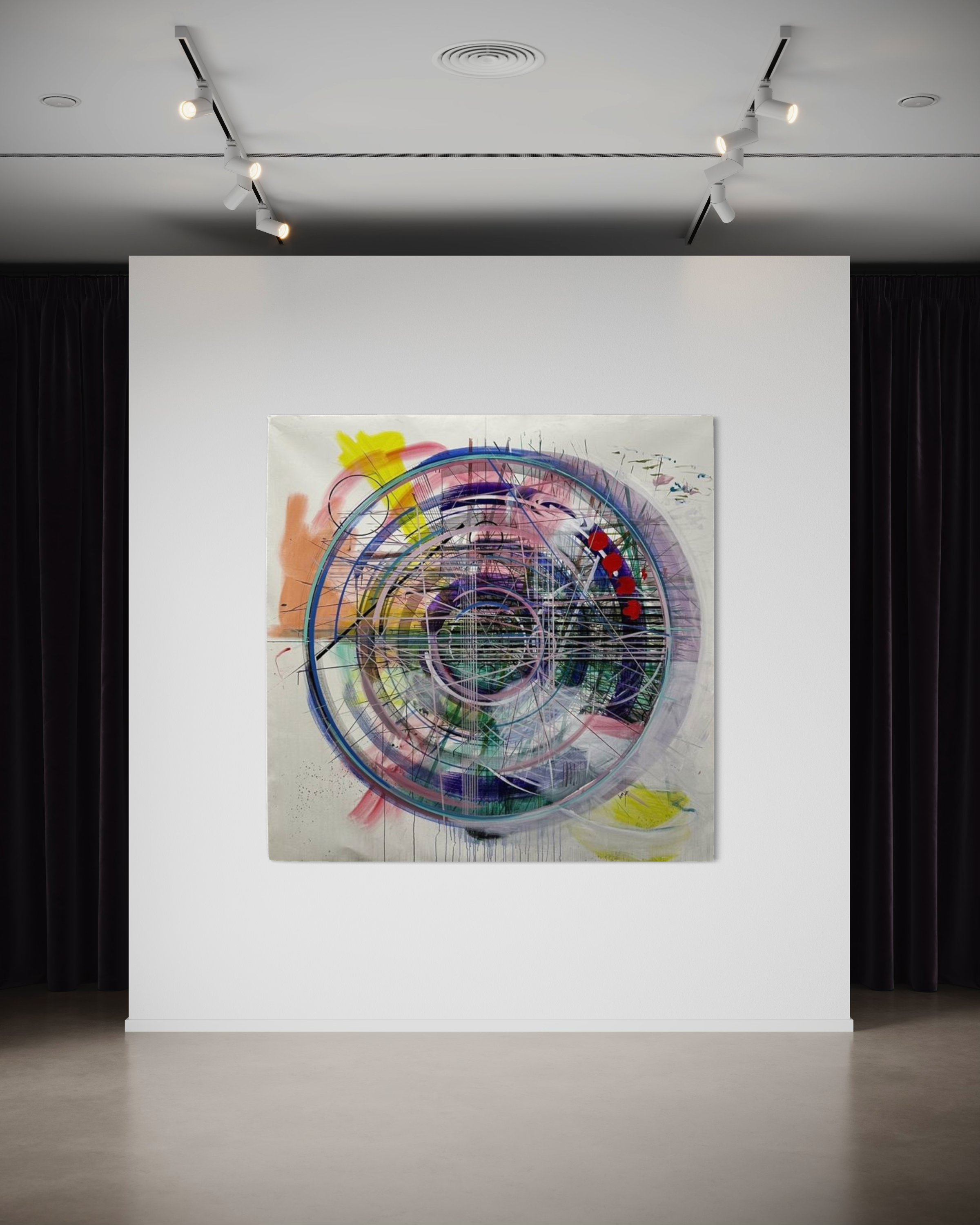 A dazzling whirlwind of energy and emotion, an abstract celebration of illumination in all its forms. At its core lies a pulsing nucleus, surrounded by concentric circles that radiate outward like ripples of light expanding through time and space. Each ring vibrates with color, tension, and meaning, forming a luminous mandala of controlled chaos.