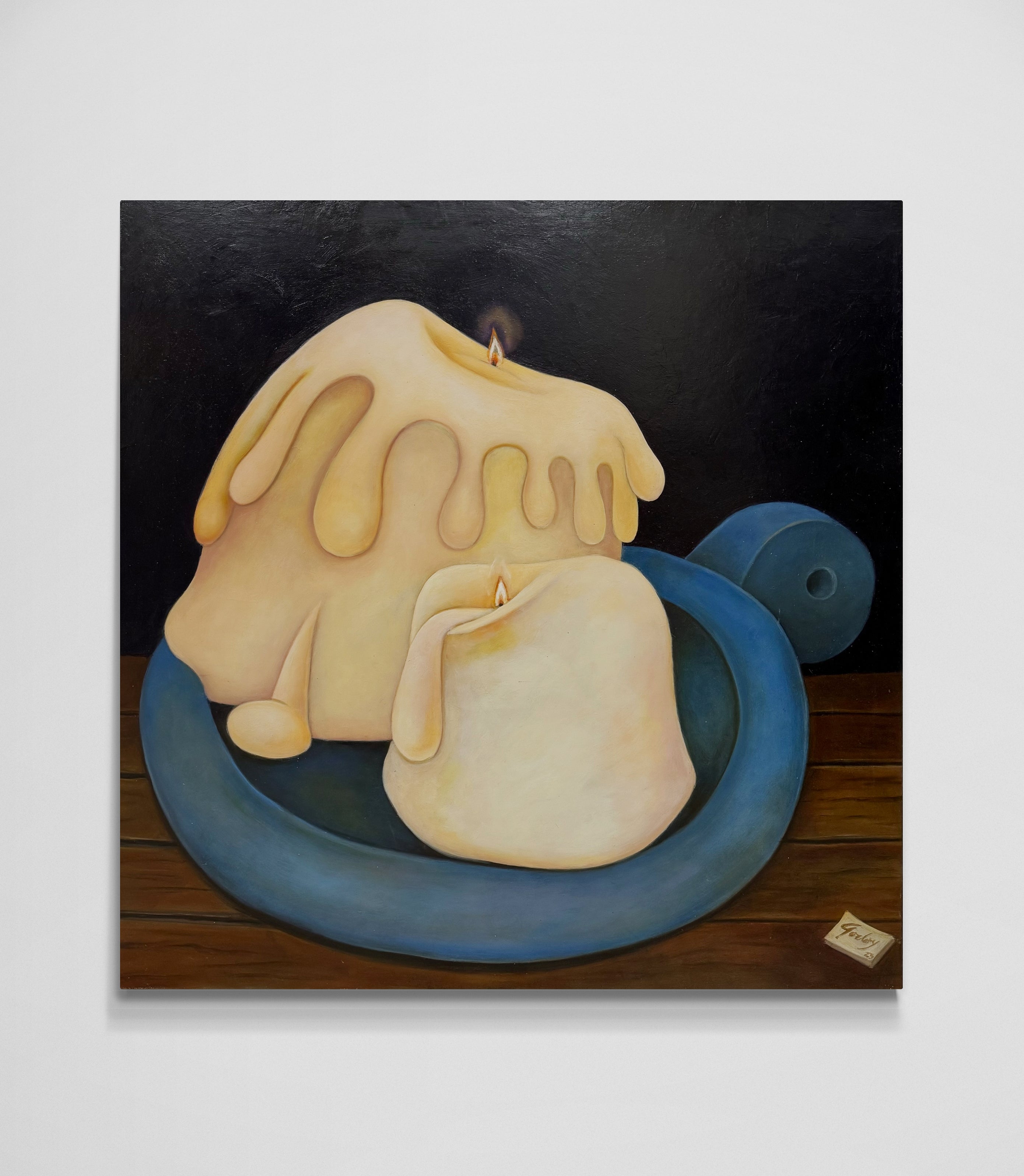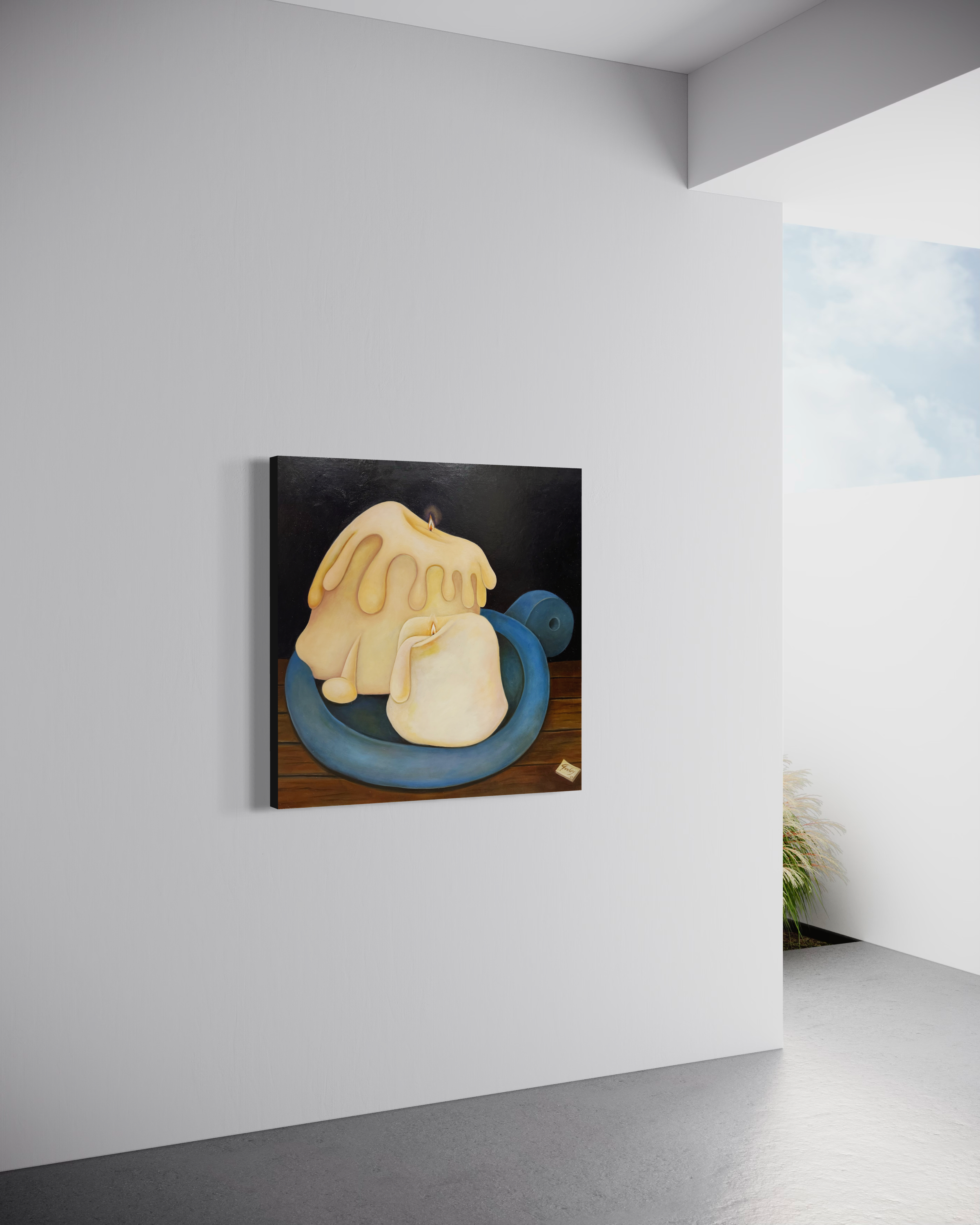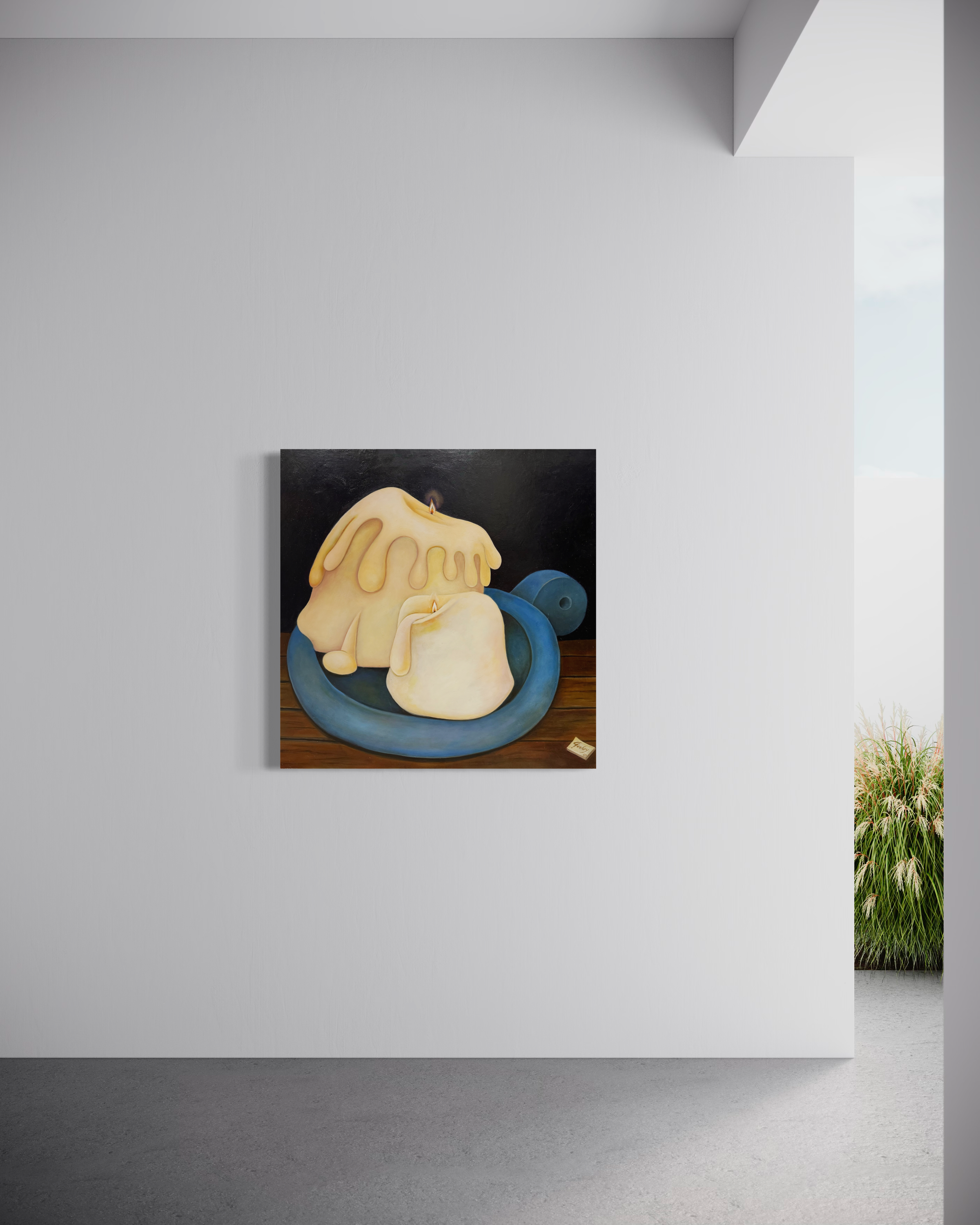 An original, one of one, hand signed oil on canvas piece by infamous Cuban artist Alberto Godoy, created in 2022. The artist’s style, with its smooth, almost tactile rendering and slightly surreal proportions, invites viewers into a dreamlike moment frozen in wax and flame. This piece beautifully captures themes of impermanence, warmth, and the quiet poetry of everyday objects transformed by light and time.